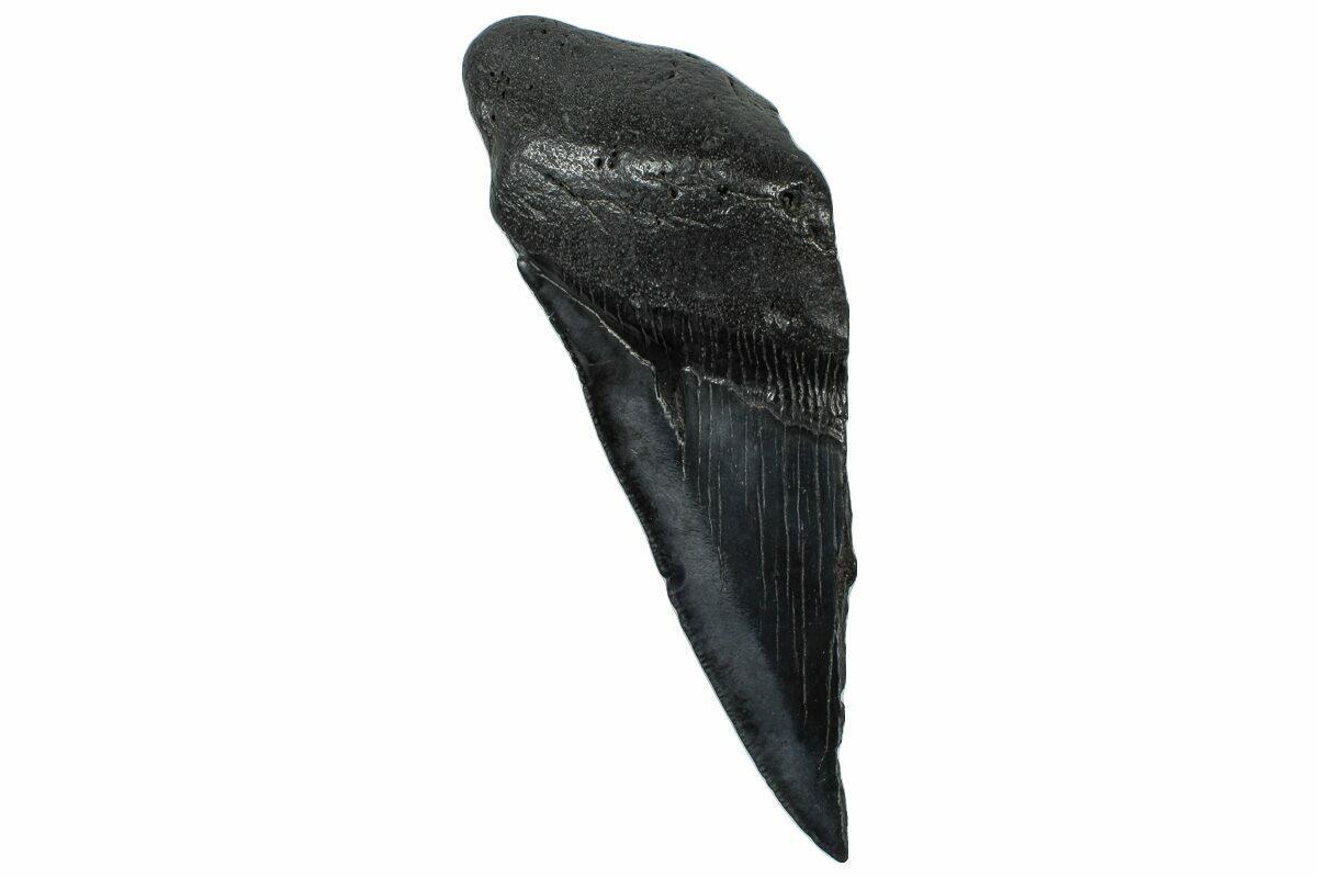 The standard measure for megalodon teeth is slant height, or the longest edge of the tooth. Adult megalodon teeth were typically in the 4 to 5 inch range: teeth over 6 inches are rare and represent super-sized individuals. Only a handful of teeth have ever been found over seven inches.