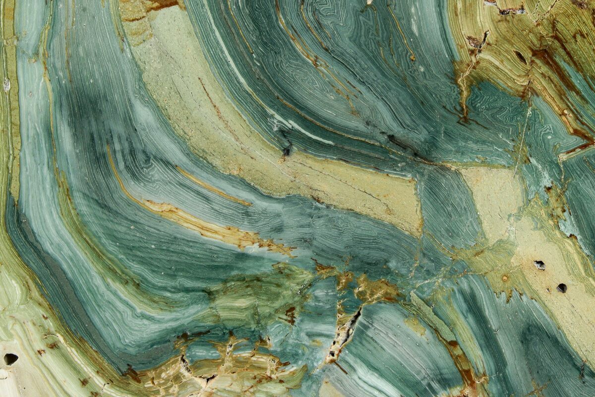 Gary Green Jasper, also referred to as petrified bog wood or Larsonite, is a form of petrified wood from a location near McDermitt, Oregon on the Nevada/Oregon border. It is believed to be wood covered by volcanic activity between 11-15 million years ago. The volcanic event covered this area in debris that deprived the plants of oxygen, halting the decay process. Minerals from the volcanic ash then acted as the replacement material for this petrification/mineralization, giving the wood these vibrant colors.