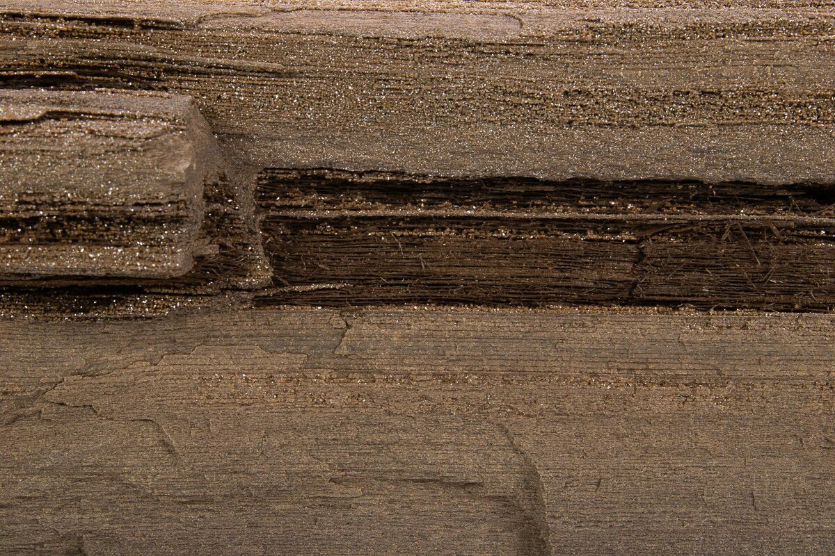 This is a 5.9" wide section of permineralized wood from Zwenkau, Germany. This resulted in very detailed preservation that makes this petrified wood specimen look as if it's ready to be thrown on the fire. The sparkles that can be seen in the photos are a result of druzy quartz that encrusts much of the wood.