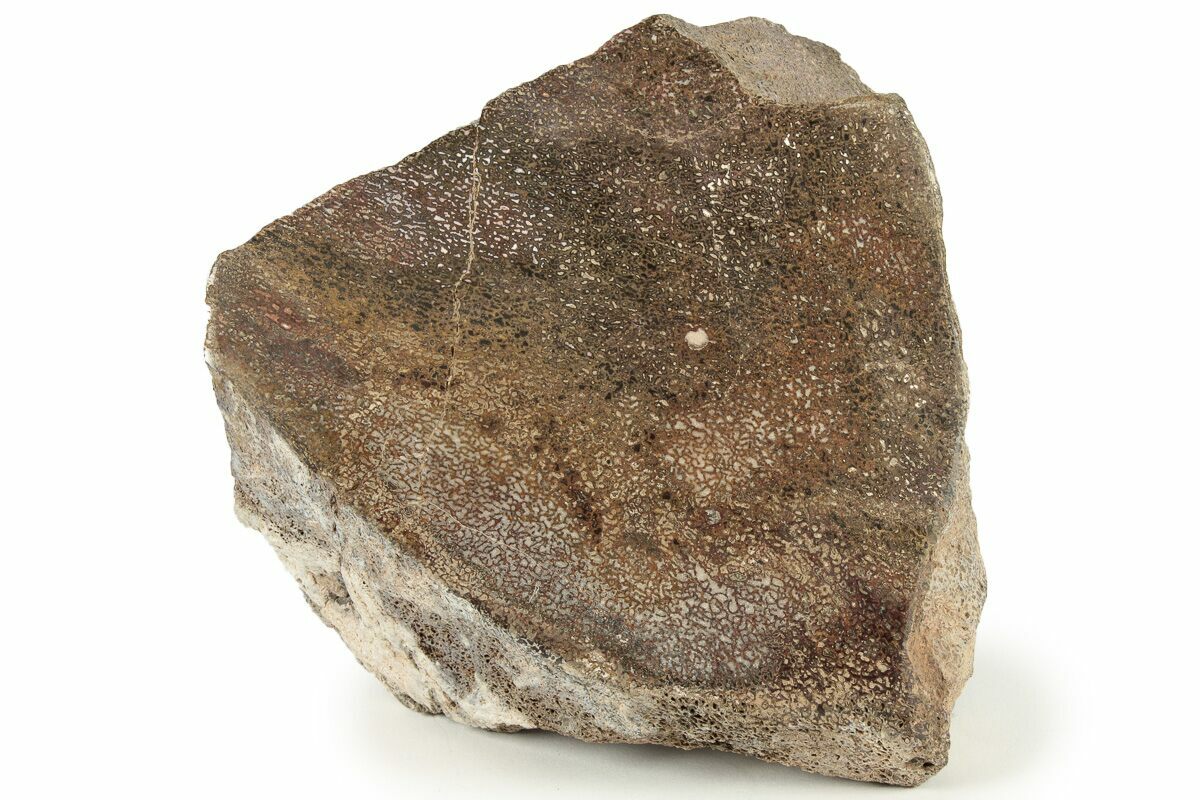 This is a 5.9" wide section of dinosaur bone from the Morrison Formation of either Utah or Colorado. One side has been cut flat and polished to a glossy finish which allows for the beautiful internal cell structure to be seen.