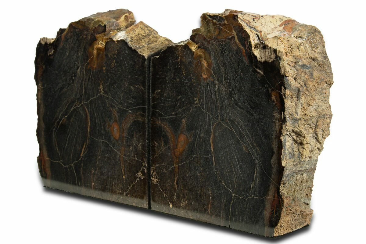 This is a pair of bookends made from Late Triassic age, Arizona petrified wood. The bookends have been polished on the outer face and dark brown and orange coloration.