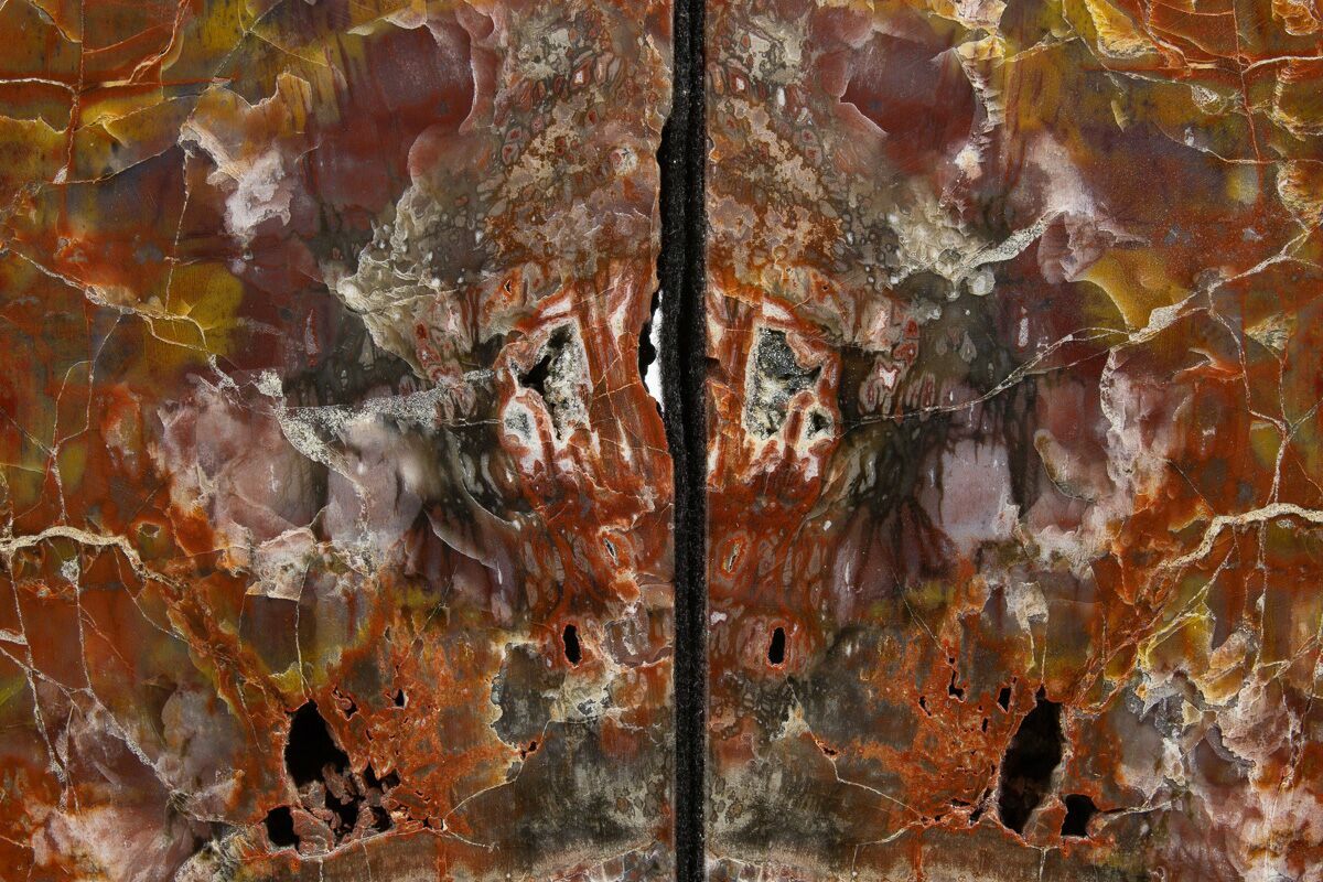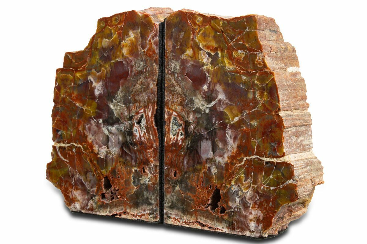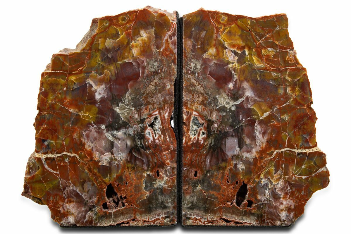 This is a gorgeous pair of bookends made from Late Triassic aged, Arizona petrified wood. The bookends have been polished on the outer face and have red, black, yellow, purple, and orange coloration. Exceptional polishing work on this pair.
