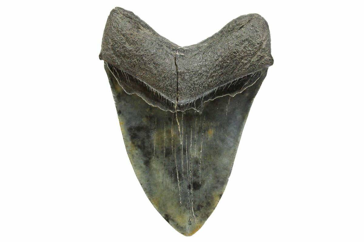 Megalodon had a cosmopolitan (global) distribution and its giant teeth can be found in deposits throughout the world. Some are collected on land in phosphate deposits, while many are collected from rivers and coastlines after eroding out of the rocks. This contributes to the water-worn, polished appearance of many teeth.