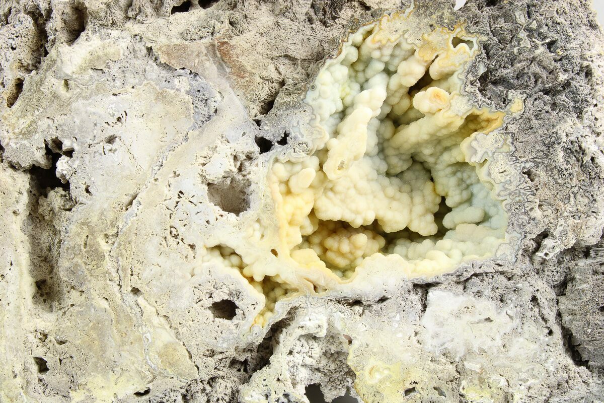 What we have for you is a spectacular specimen of agatized coral from the Basin Deposits of Florida. This fossil coral is Miocene (25-32 million years) in age, and was formed when fine sediments covered shallow coral reefs. As silica-rich groundwater seeped through rock that became exposed as sea levels dropped, it replaced the calcium carbonate skeleton of the coral with chalcedony. While exact identification is difficult to pinpoint, this specimen exhibits structures consistent with rugose coral. Agate-filled portions of this coral specimen glows a phantasmal white color under short-wave UV light.