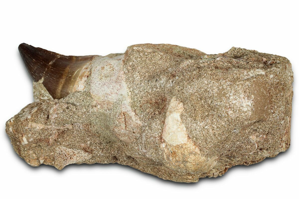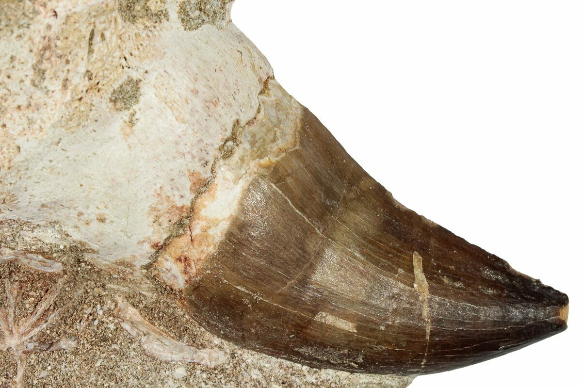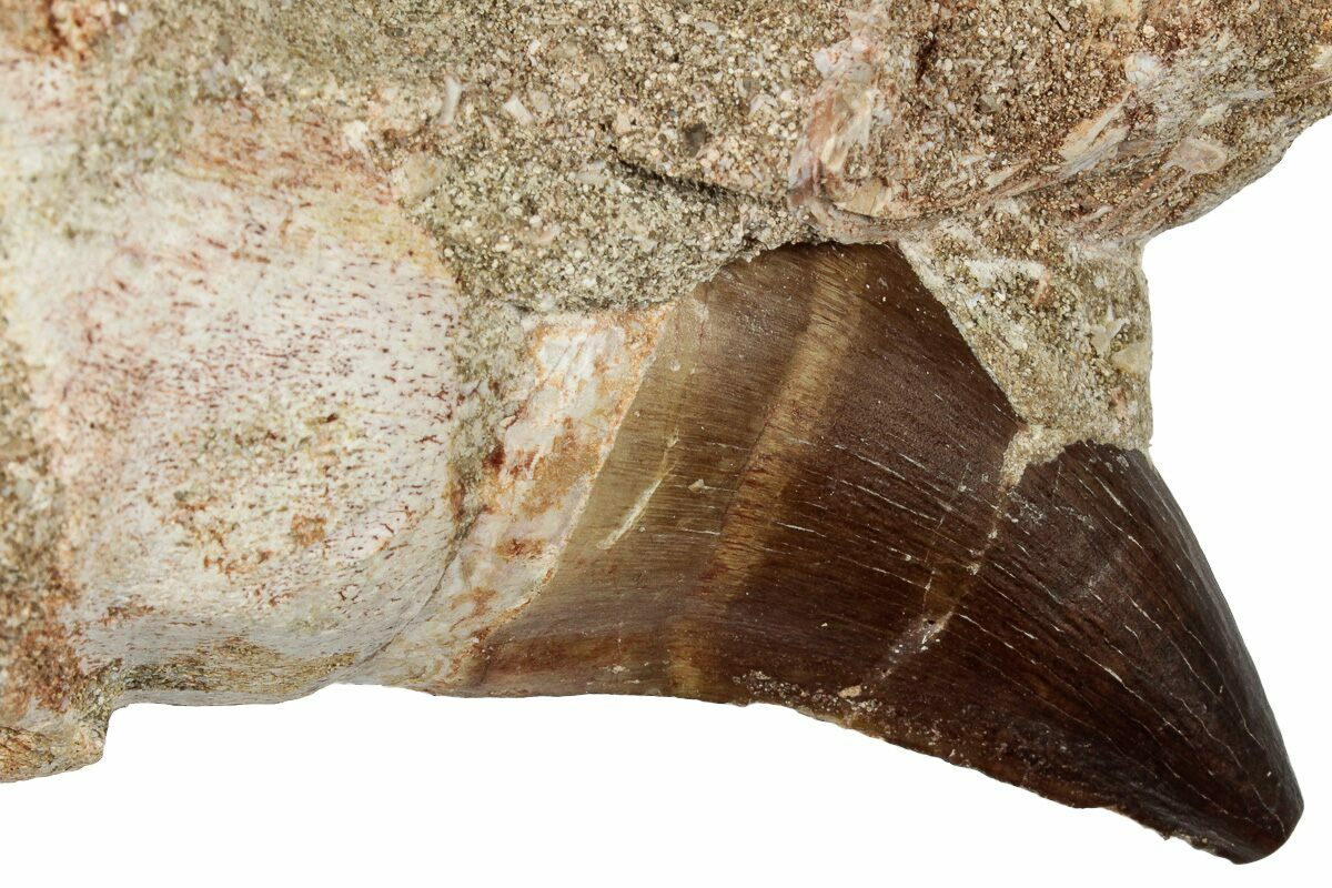 5" Fossil Mosasaur (Thalassotitan) Tooth in Jaw Section - Morocco