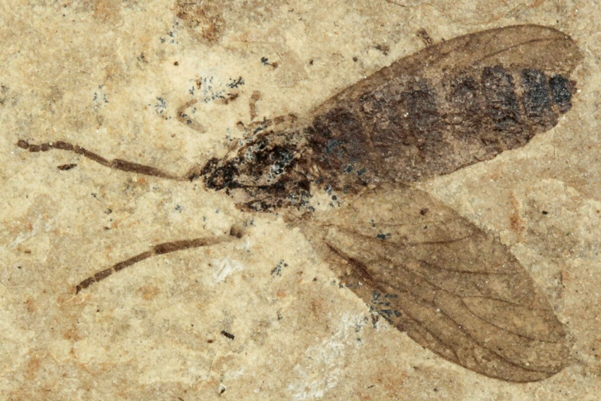 This is part of an old collection that we recently acquired. The collection includes a variety of insect fossils from around Southern France, collected over a span of 50 years by a woman with PhDs in paleontology and pharmacology.