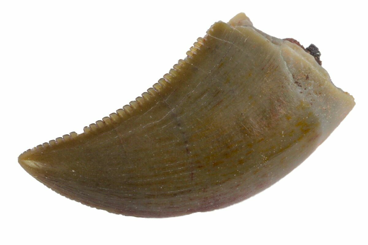 This is a gorgeous, .51" long, serrated Allosaurus tooth collected this past summer. It comes from the Morrison Formation at our partners private quarry East of Dinosaur, Colorado. The tooth has beautiful preservation with excellent enamel and a nice tip. It almost certainly would have come from a juvenile given its small size.