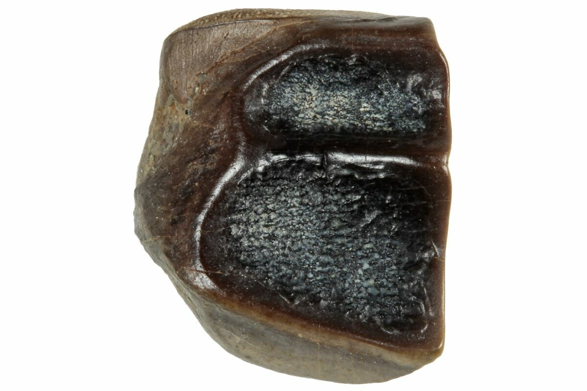 This tooth is a shed tooth or "spitter" and has a polished upper surface indicative of wear from grinding food.