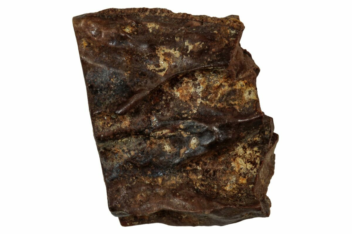 This specimen is one of those naturally shed teeth and features a polished chewing surface, showing clear evidence of the wear that came from processing vegetation millions of years ago.