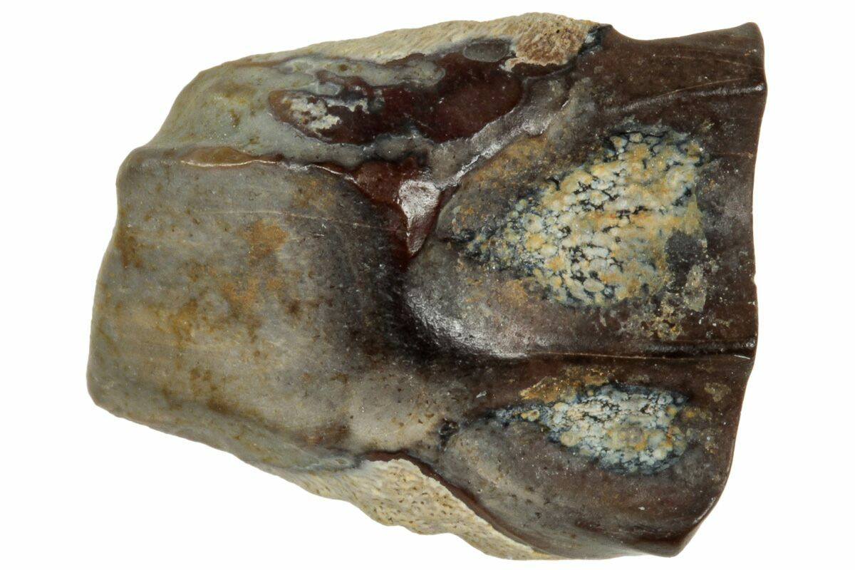 This tooth is a shed tooth or "spitter" and has a polished upper surface indicative of wear from grinding food.