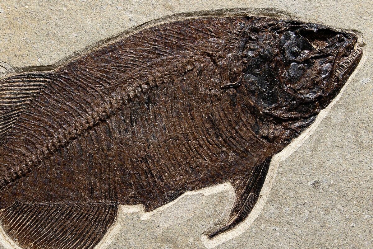 50 million years ago, in the Eocene epoch, these fish thrived in Fossil Lake, which was fed by the Uinta and Rocky Mountain highlands. The anoxic conditions at the bottom of Fossil Lake slowed bacterial decomposition, prevented scavengers from disturbing corpses, and, most interestingly, suffocated creatures that ventured into the oxygen-starved aquatic layer. The result is a miraculous exhibition of Eocene biota: a subtropical aquatic community within sycamore forests, teeming with creatures such as freshwater stingrays, dog-sized horses, menacing alligators, early flying bats, and one of the first primates.