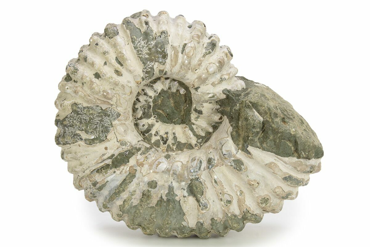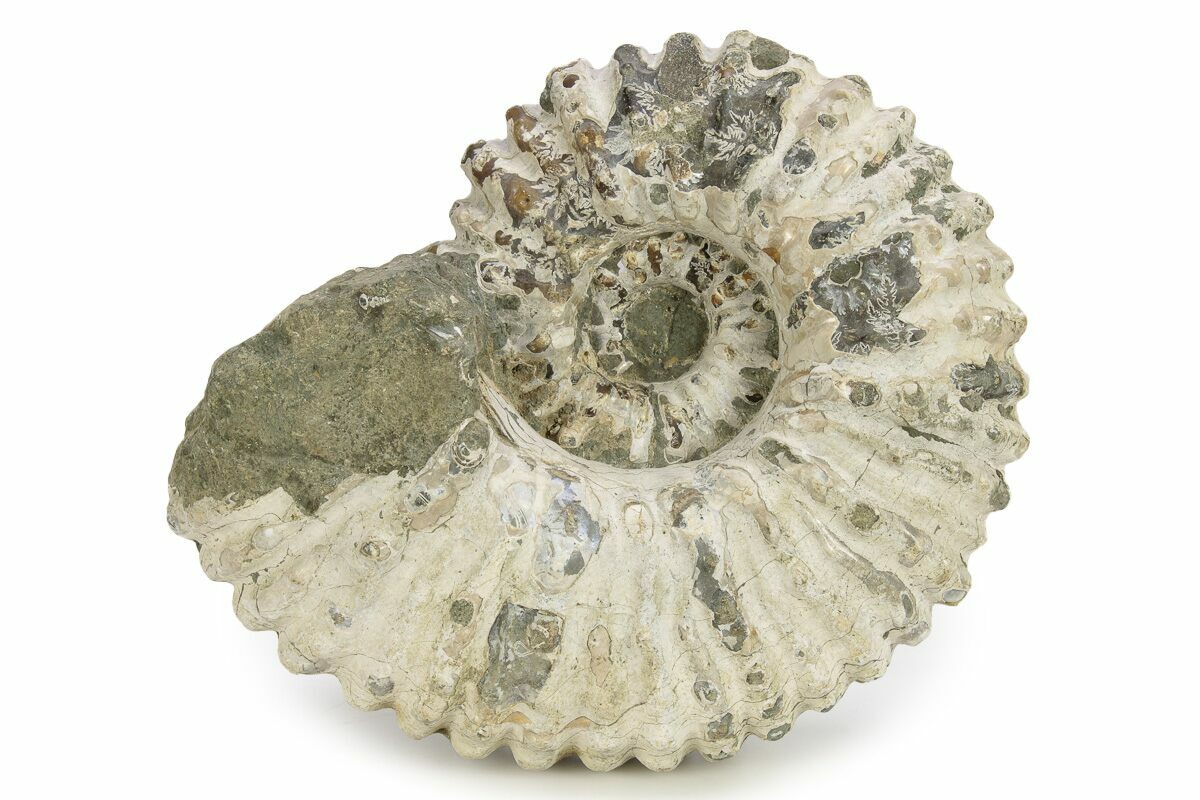 Ammonites were ancient marine cephalopods, similar to today's squids and octopuses, but with a defining feature: their distinctive, tightly coiled spiral shells. These shells, resembling those of modern nautiluses, served as both a protective home and a buoyancy aid, allowing ammonites to navigate the prehistoric seas with ease. First emerging around 240 million years ago in the Triassic Period, ammonites thrived for over 175 million years, adapting through numerous forms and sizes. As predatory creatures, they likely fed on smaller marine organisms, using their tentacles to capture prey. However, their long reign came to an end 65 million years ago at the close of the Cretaceous, coinciding with the mass extinction event that also eliminated the dinosaurs.