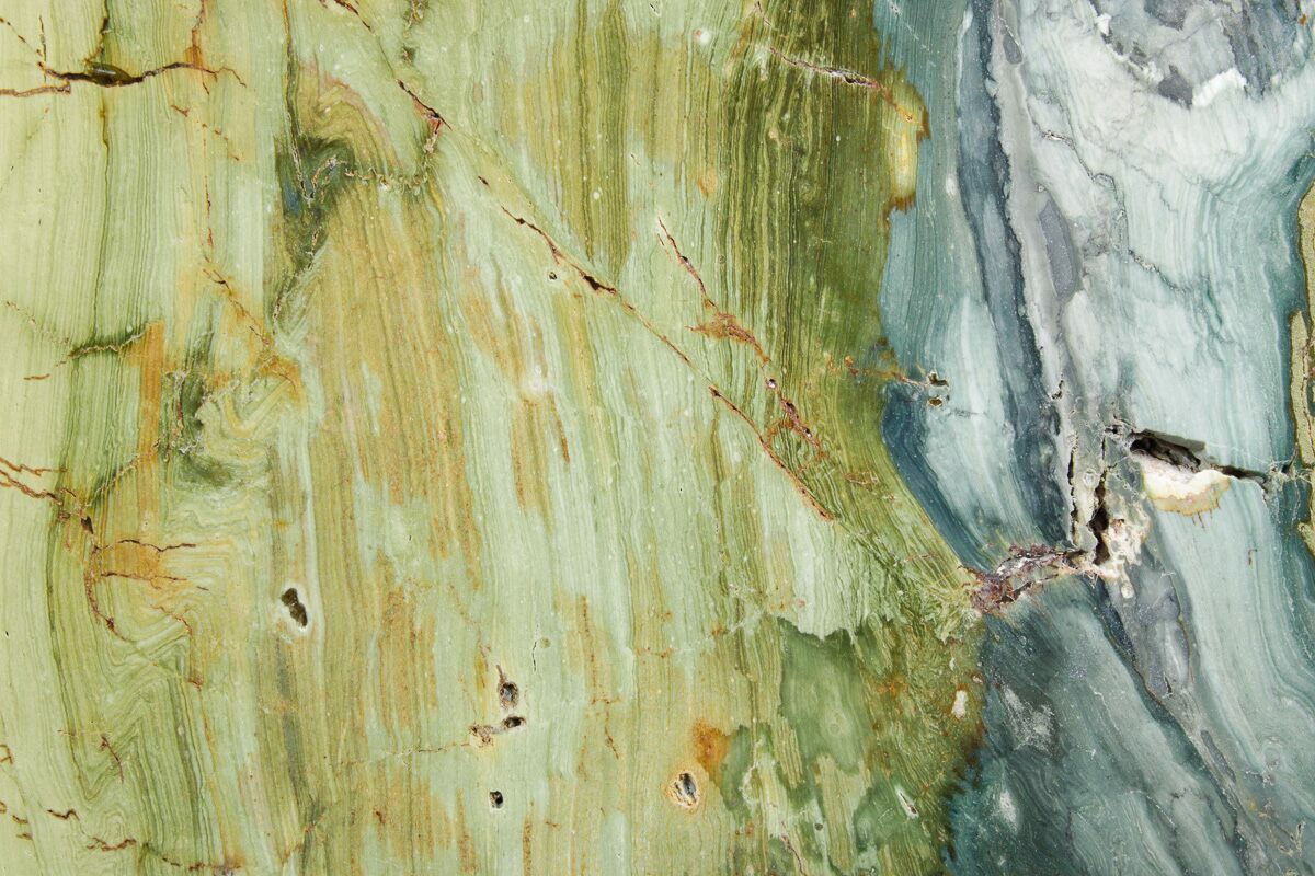 Gary Green Jasper, also referred to as petrified bog wood or Larsonite, is a form of petrified wood from a location near McDermitt, Oregon on the Nevada/Oregon border. It is believed to be wood covered by volcanic activity between 11-15 million years ago. The volcanic event covered this area in debris that deprived the plants of oxygen, halting the decay process. Minerals from the volcanic ash then acted as the replacement material for this petrification/mineralization, giving the wood these vibrant colors.