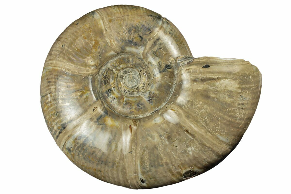 This is a beautiful, 6.2" wide polished ammonite (Argonauticeras) fossil, collected from the Mahajanga Province of Madagascar. It is Early Cretaceous (Albian Stage) in age, or approximately 110 million years old. This is one of the more uncommon ammonite genera found in the area.