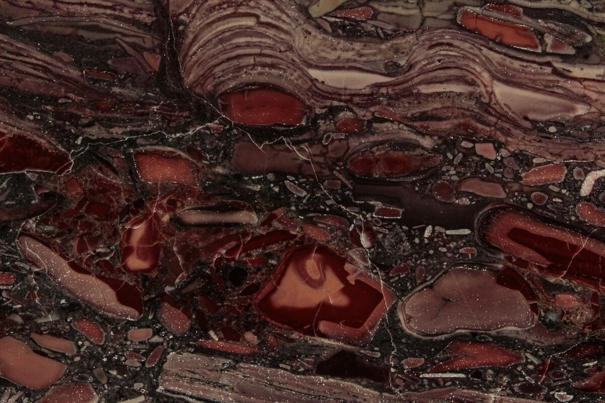 This is a beautiful, 6.2" wide polished slab of Mesoproterozoic (~1.1 billion years old) domal stromatolites, collected from the Irregully Formation near Paraburdoo, Western Australia. These stromatolites have yet to be formally identified. One side has been polished to a mirror-like finish.