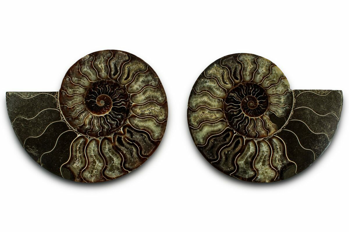 It exhibits gorgeous mineralization within the chambers, each separated by white calcite septa (divisions). This highly polished, exotic ammonite makes a superb display piece with tremendous historical appeal.