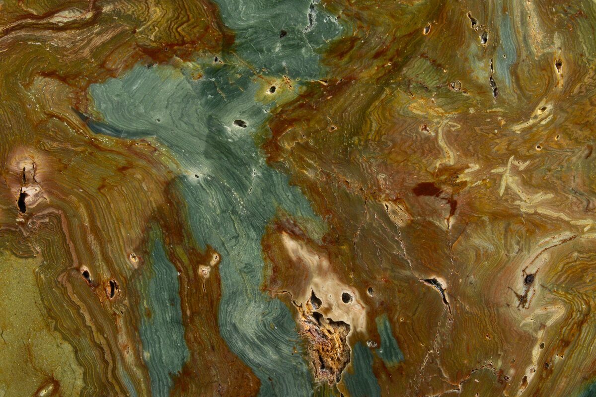 Gary Green Jasper, also referred to as petrified bog wood or Larsonite, is a form of petrified wood from a location near McDermitt, Oregon on the Nevada/Oregon border. It is believed to be wood covered by volcanic activity between 11-15 million years ago. The volcanic event covered this area in debris that deprived the plants of oxygen, halting the decay process. Minerals from the volcanic ash then acted as the replacement material for this petrification/mineralization, giving the wood these vibrant colors.