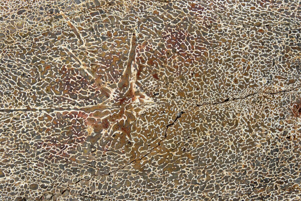 Dinosaur gembone (agatized dinosaur bone) forms when the porous structure of dinosaur bone is replaced by silica-rich minerals like agate, chalcedony, or jasper. This preserves the bone’s internal cell patterns, creating striking, web-like textures visible when polished.