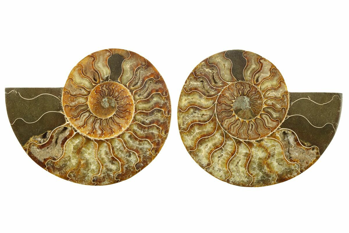 It exhibits gorgeous mineralization within the chambers, each separated by white calcite septa (divisions). This highly polished, exotic ammonite makes a superb display piece with tremendous historical appeal.
