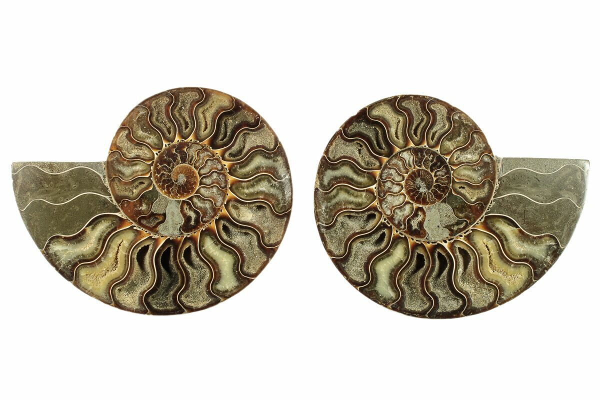 It exhibits gorgeous mineralization within the chambers, each separated by white calcite septa (divisions). This highly polished, exotic ammonite makes a superb display piece with tremendous historical appeal.