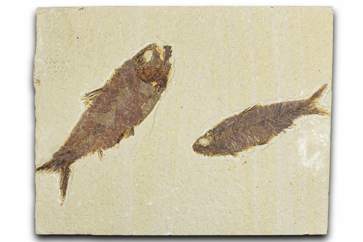 6.5" Limestone with Two Fossil Fish (Knightia) - Wyoming