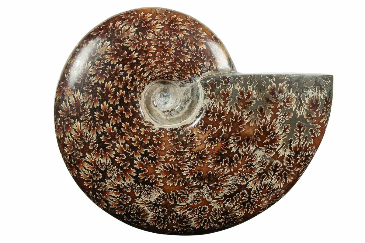 This is a 6.5" wide polished ammonite of the genus Cleoniceras, collected in Madagascar. It is absolutely gorgeous, displaying a distinctive "oak-leaf" suture pattern on the surface. This 110 million year old ammonite is truly a natural work of art, displaying beautifully on the included acrylic stand.
