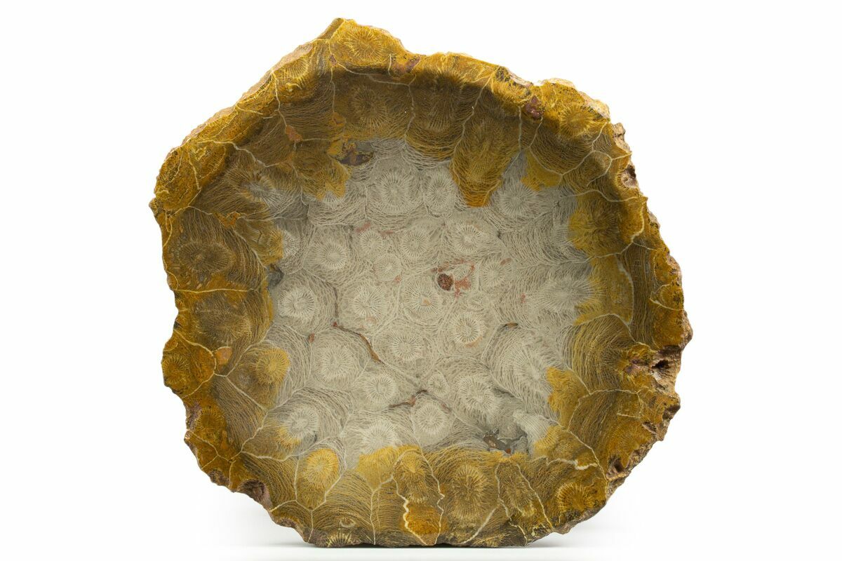 6.5" Polished Fossil Coral (Actinocyathus) Dish - Morocco