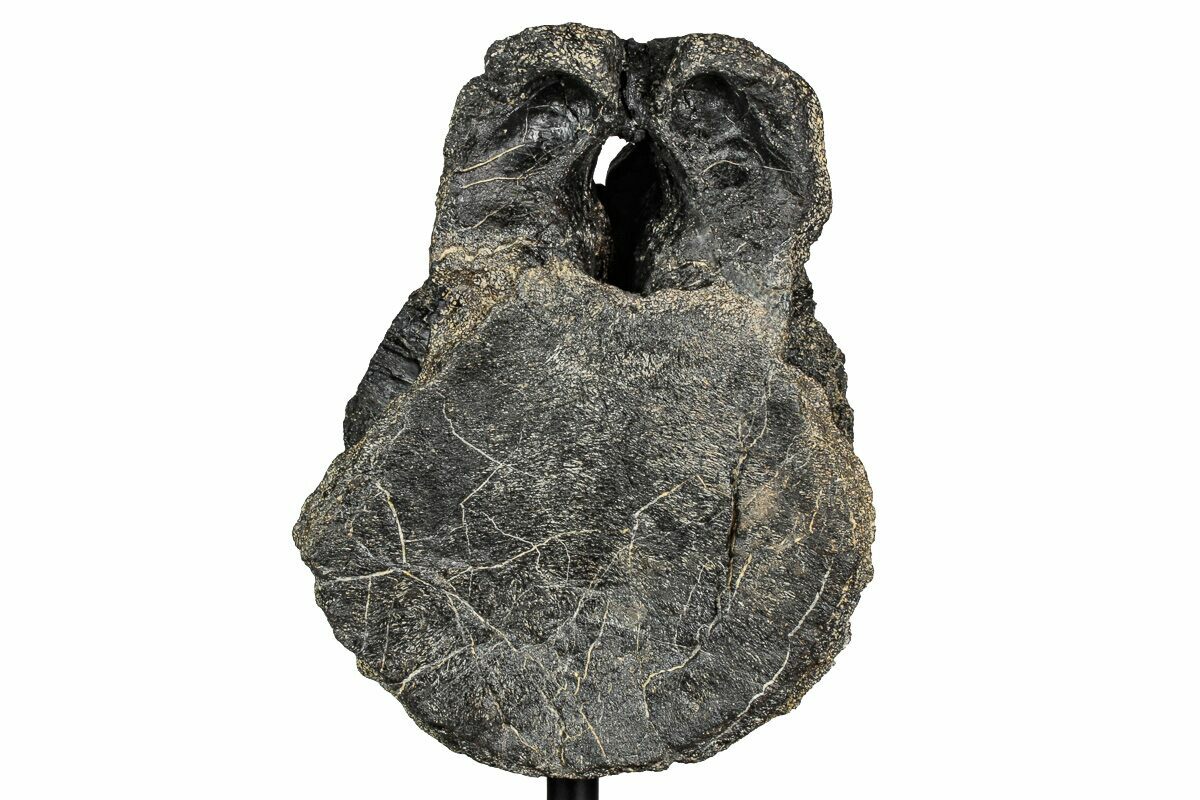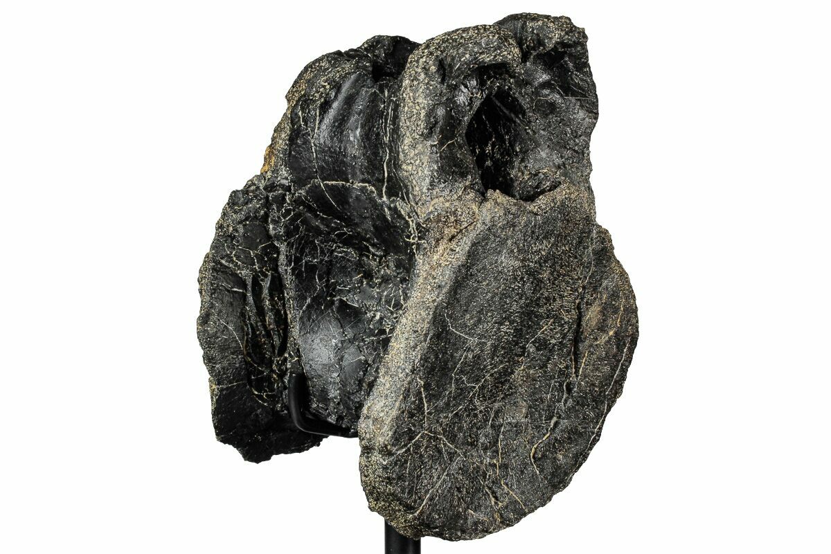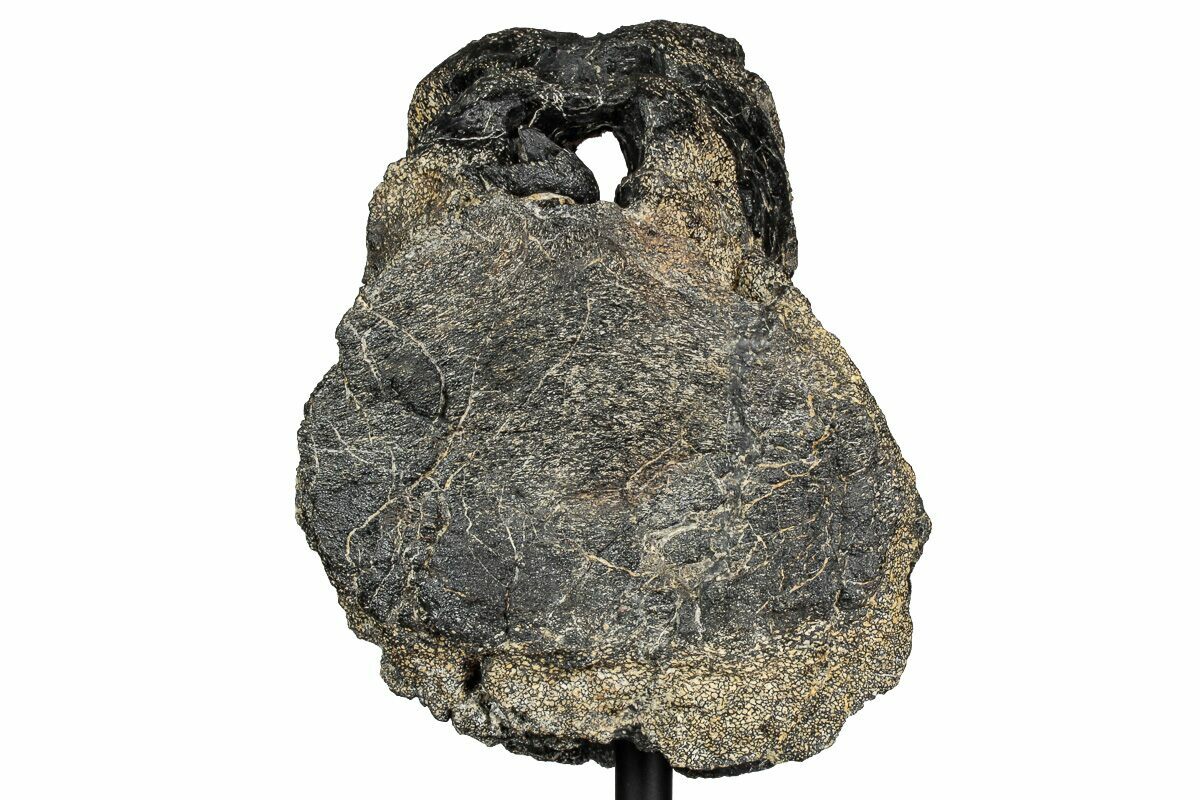 There are multiple repaired cracks through the vertebra and it has undergone some natural crushing and warping over the millions of years beneath the surface. The gap fill required to piece the bone back together makes up less than 5% of the specimen.