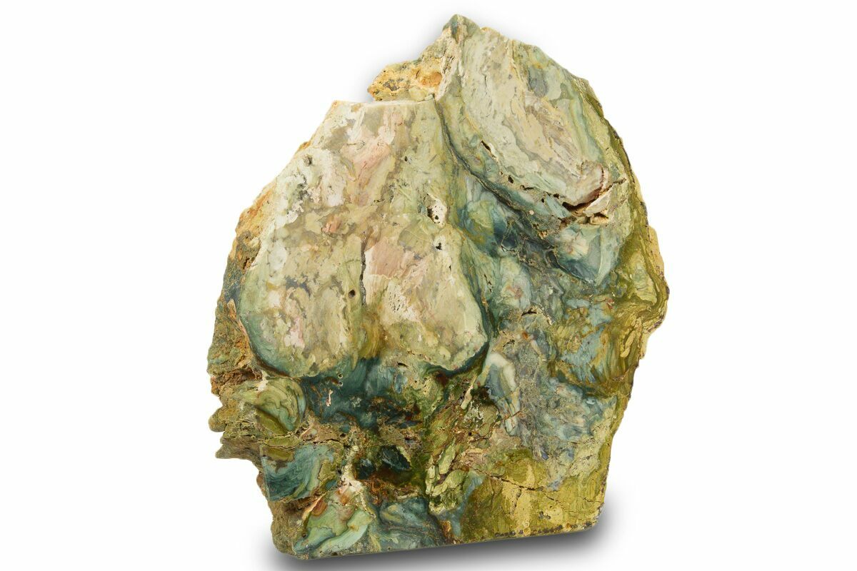 Gary Green Jasper, also referred to as petrified bog wood or Larsonite, is a form of petrified wood from a location near McDermitt, Oregon on the Nevada/Oregon border. It is believed to be wood covered by volcanic activity between 11-15 million years ago. The volcanic event covered this area in debris that deprived the plants of oxygen, halting the decay process. Minerals from the volcanic ash then acted as the replacement material for this petrification/mineralization, giving the wood these vibrant colors.