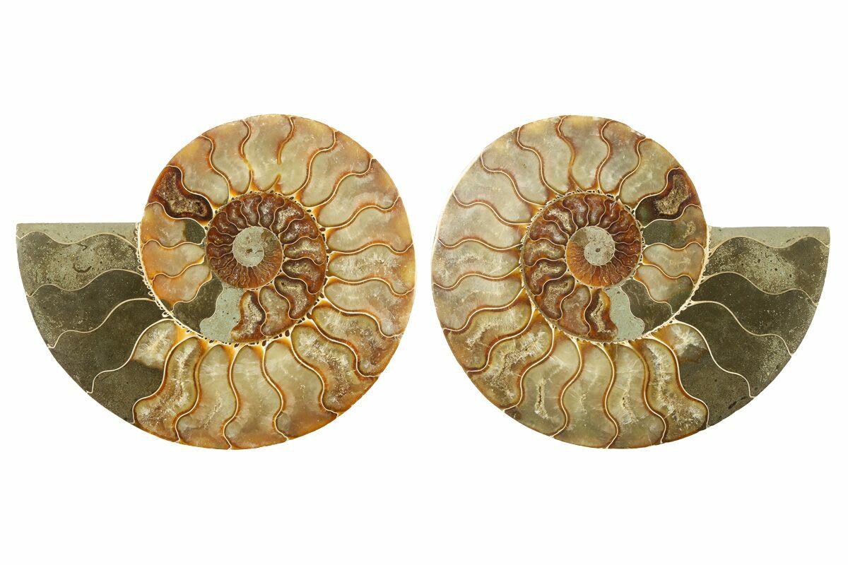 It exhibits gorgeous mineralization within the chambers, each separated by white calcite septa (divisions). This highly polished, exotic ammonite makes a superb display piece with tremendous historical appeal.