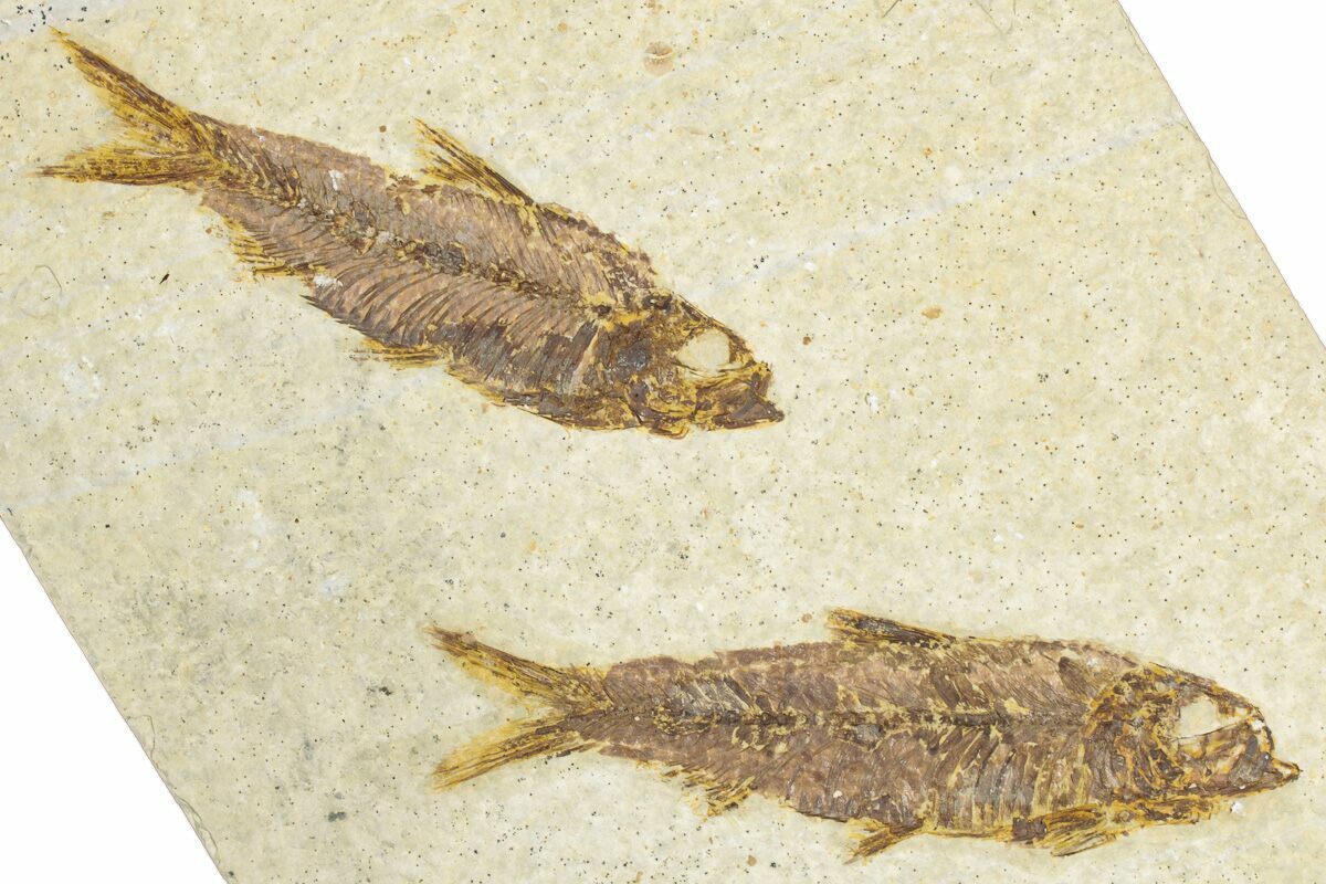 6.8" Limestone with Two Fossil Fish (Knightia) - Wyoming