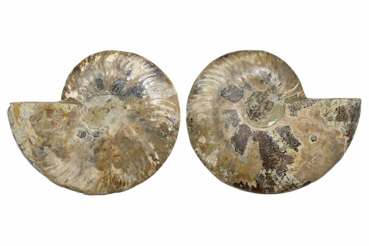 Both halves are included along with a pair of display stands. The center of the ammonite is a composite from another specimen.