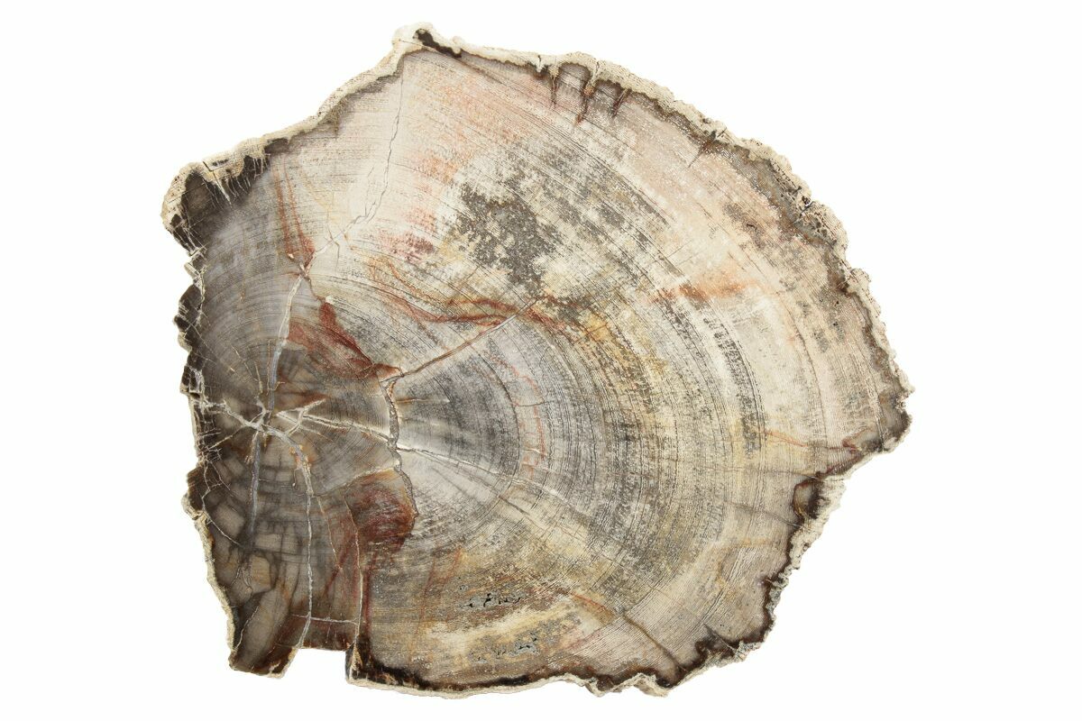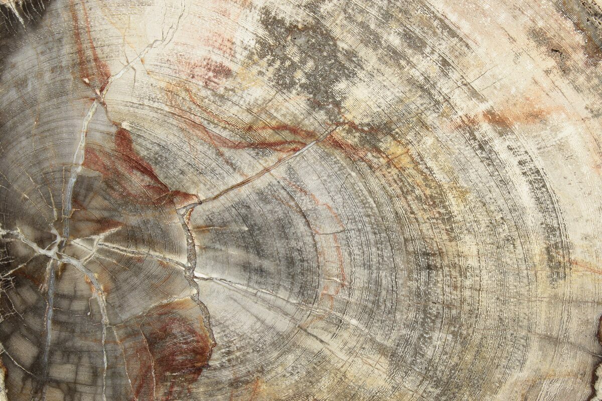 Petrified wood is the name given to wood that has been turned into stone (fossilized) through the process of permineralization. In this process, all of the organic matter becomes replaced by minerals, while much of the original structure, such as tree rings, is retained. For this to happen, the wood needs to be buried in an environment low in oxygen to prevent decomposition and with flowing, mineral-laden water, so minerals may replace structures. The coloration is caused by various minerals/impurities present in the water during fossilization. For example, red colors in many cases can be attributed to iron compounds, greens due to copper, and so on.