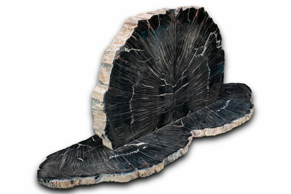 Petrified wood is the name given to wood that has been turned into stone (fossilized) through the process of permineralization. In this process, all of the organic matter becomes replaced by minerals, while much of the original structure, such as tree rings, is retained. For this to happen, the wood needs to be buried in an environment low in oxygen to prevent decomposition and with flowing, mineral-laden water, so minerals may replace structures. The coloration is caused by various minerals/impurities present in the water during fossilization. For example, red colors in many cases can be attributed to iron compounds, greens due to copper, and so on.