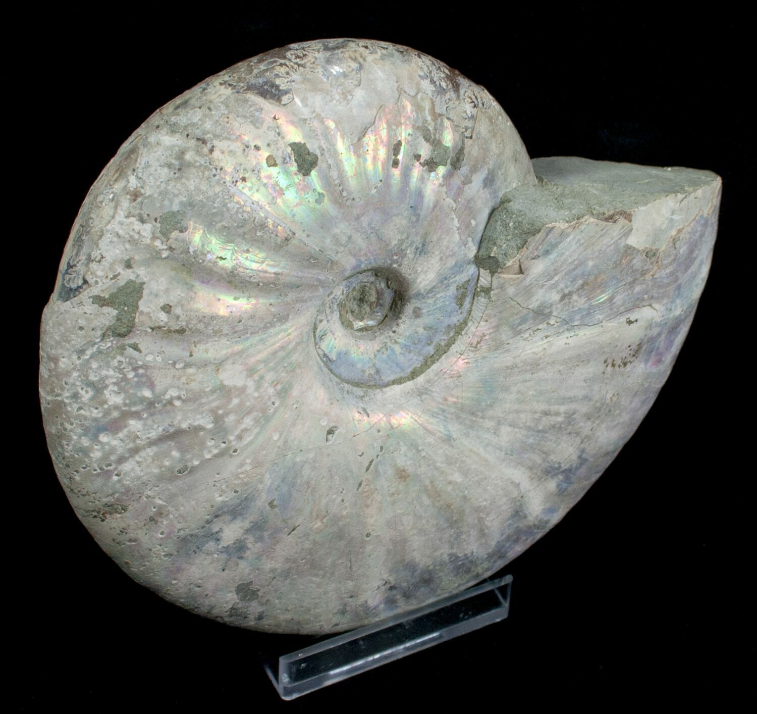 The outer shell of ammonites often displays intricate ribbed or ridged patterns and their fossils sometimes show a wide range of beautiful colors due to mineralization over time. The shells fossilized well, making ammonites abundant in the fossil record.. In addition to being popular in fossil collections, ammonites are valuable in geological studies, as they serve as index fossils, helping scientists date rock layers and understand the Earth's prehistoric environments.