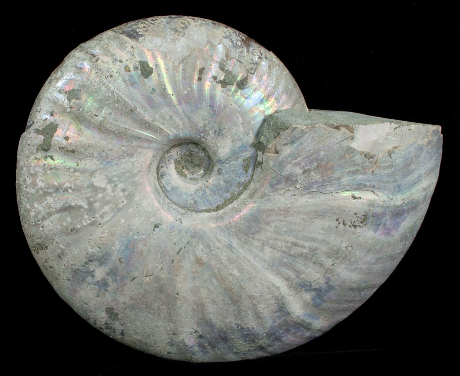 6 Inch Silver Iridescent Ammonite - Madagascar
