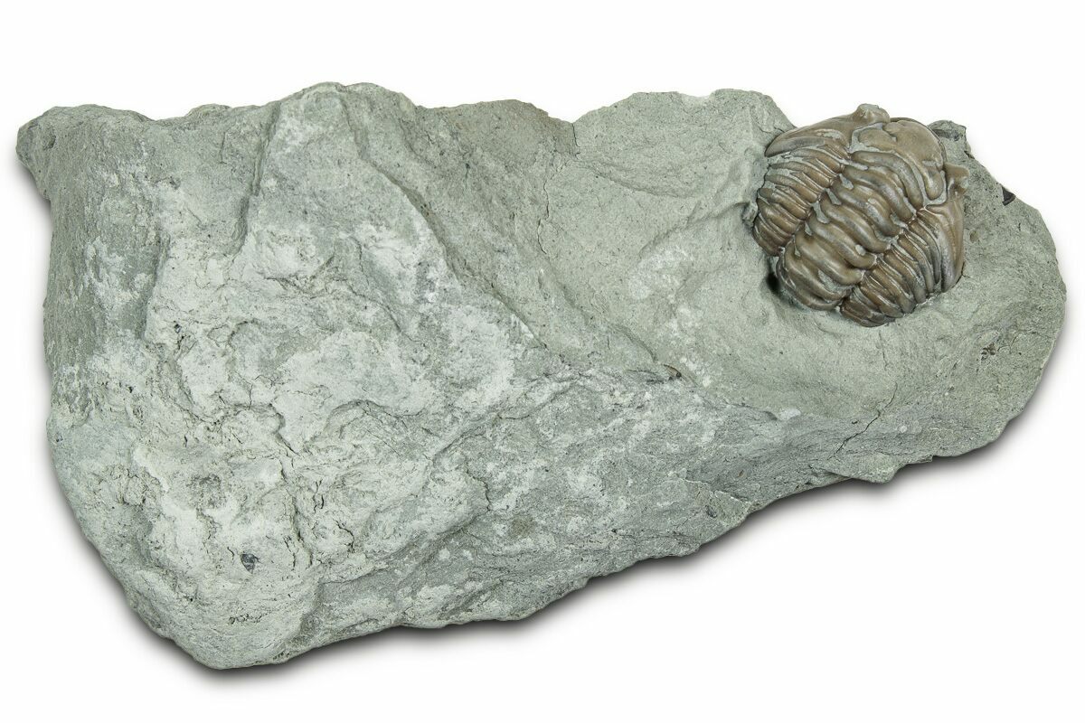 Flexicalymene is often found enrolled, seemingly to protect its softer underside from threats on a sea floor teeming with ancient life and increasingly complex predators. Sealing itself inside the hard carapace may be a protective maneuver, or it may simply be the pose of death.