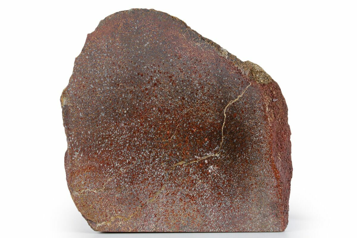 This is a very vibrant, 6" wide section of polished agatized dinosaur bone (gembone) from the Morrison Formation in New Mexico. It is cut flat and polished to a glossy finish on one side while the opposite side has been left in its rough state.