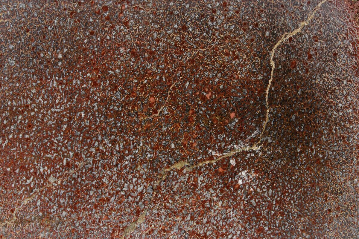 Dinosaur gembone (agatized dinosaur bone) forms when the porous structure of dinosaur bone is replaced by silica-rich minerals like agate, chalcedony, or jasper. This preserves the bone’s internal cell patterns, creating striking, web-like textures visible when polished.