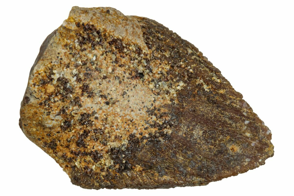 This tooth exhibits relatively little wear to the feeding surface and thus was probably not shed. Meaning it was likely in the mouth of the dinosaur when it died.