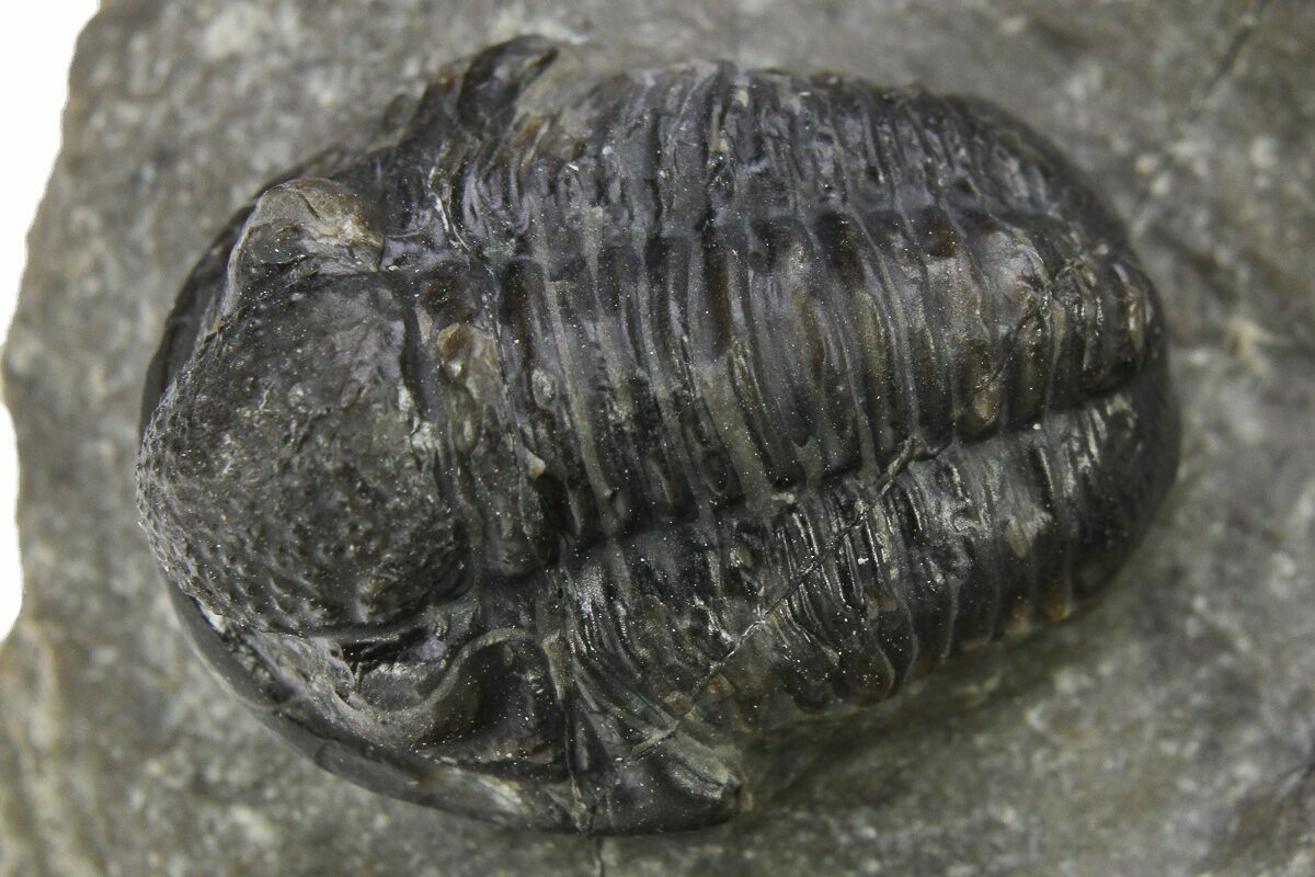 This is a .65" long specimen of the proetid trilobite, Gerastos, collected from Issoumour, Morocco.
