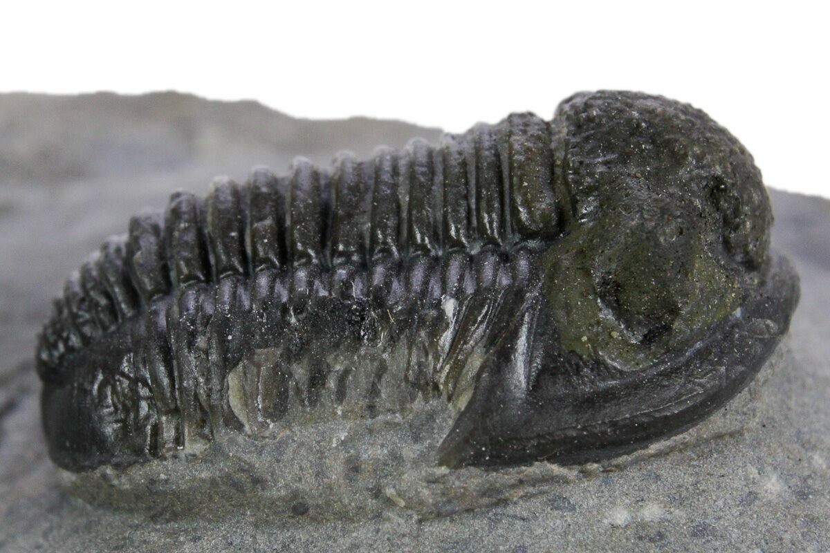 This is a .65" long specimen of the proetid trilobite, Gerastos, collected from Issoumour, Morocco. It is nicely inflated with good shell detail. It has about 4-5% shell restoration.