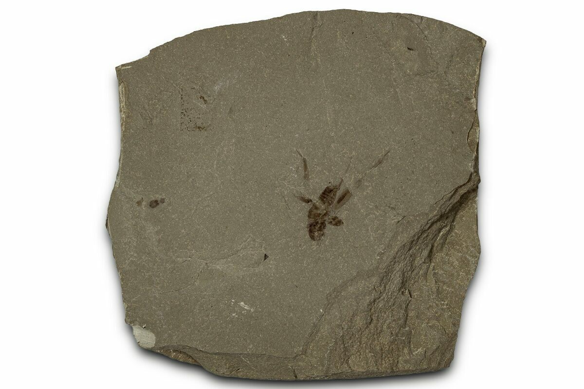 This is a very nice .65" long fossil cricket (order Orthoptera) that was collected from the Green River Formation of Utah. While this formation is best known for well-preserved fossil fish found in Wyoming, other sections of the formation contain a very diverse insect fauna.