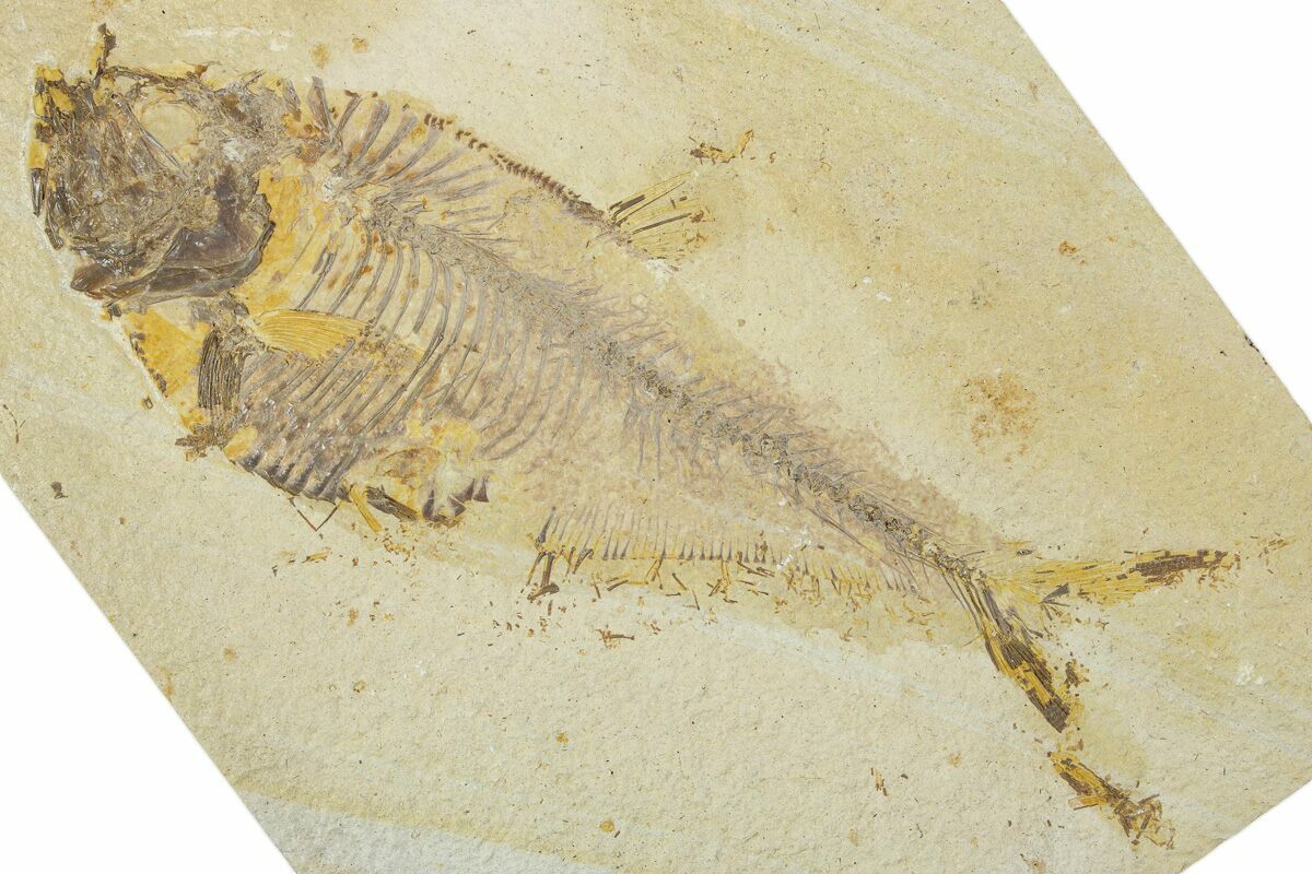 Today the wonderfully preserved fossils of Diplomystus and other Fossil Lake fauna are collected in several private quarries around Kemmerer, Wyoming. The best preserved fish fossils come from the coveted 18 Inch Layer. This layer is collected at night under high-powered lights, enhancing the faint signs of fish under the surface indicating underlying fossils. These “ghosted” fish then must go through many hours of manual preparation to remove the overlying rock and reveal the Green River fauna in all of its glory.