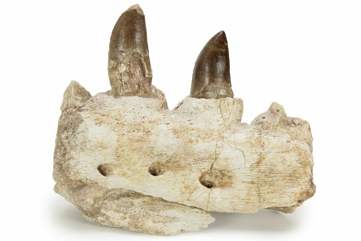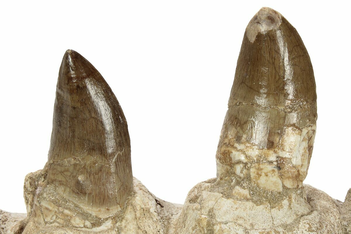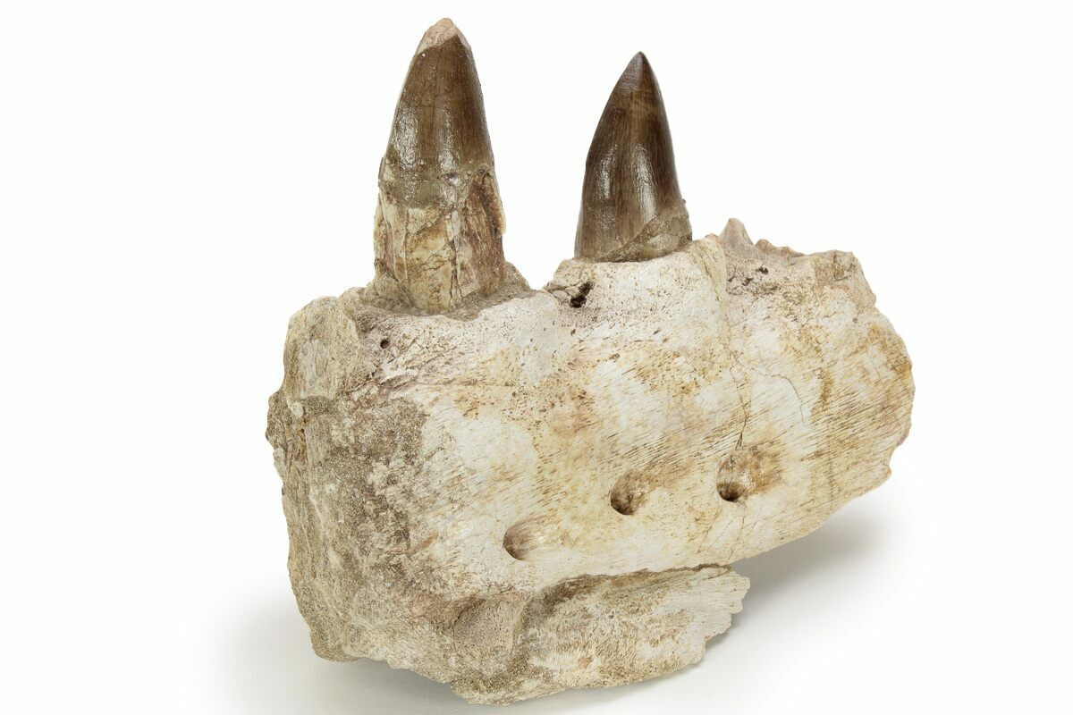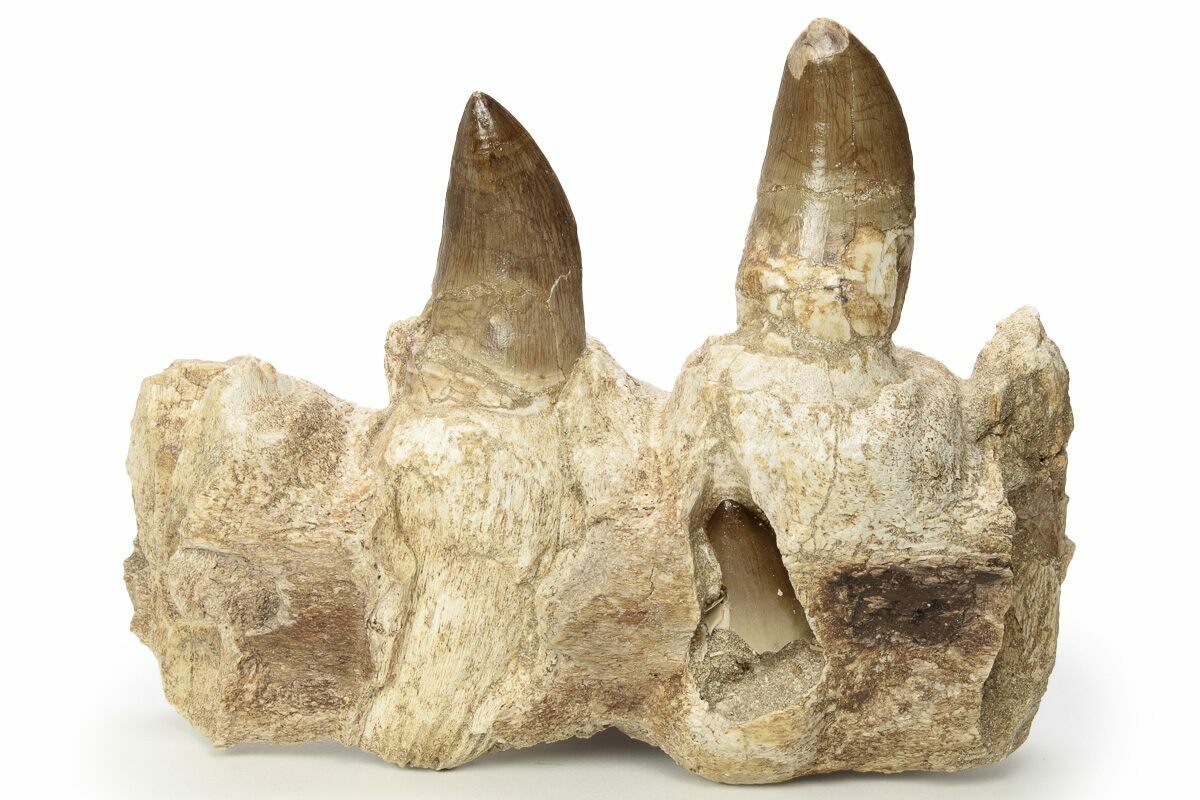 7.1" Mosasaur Jaw Section with Two Teeth - Morocco
