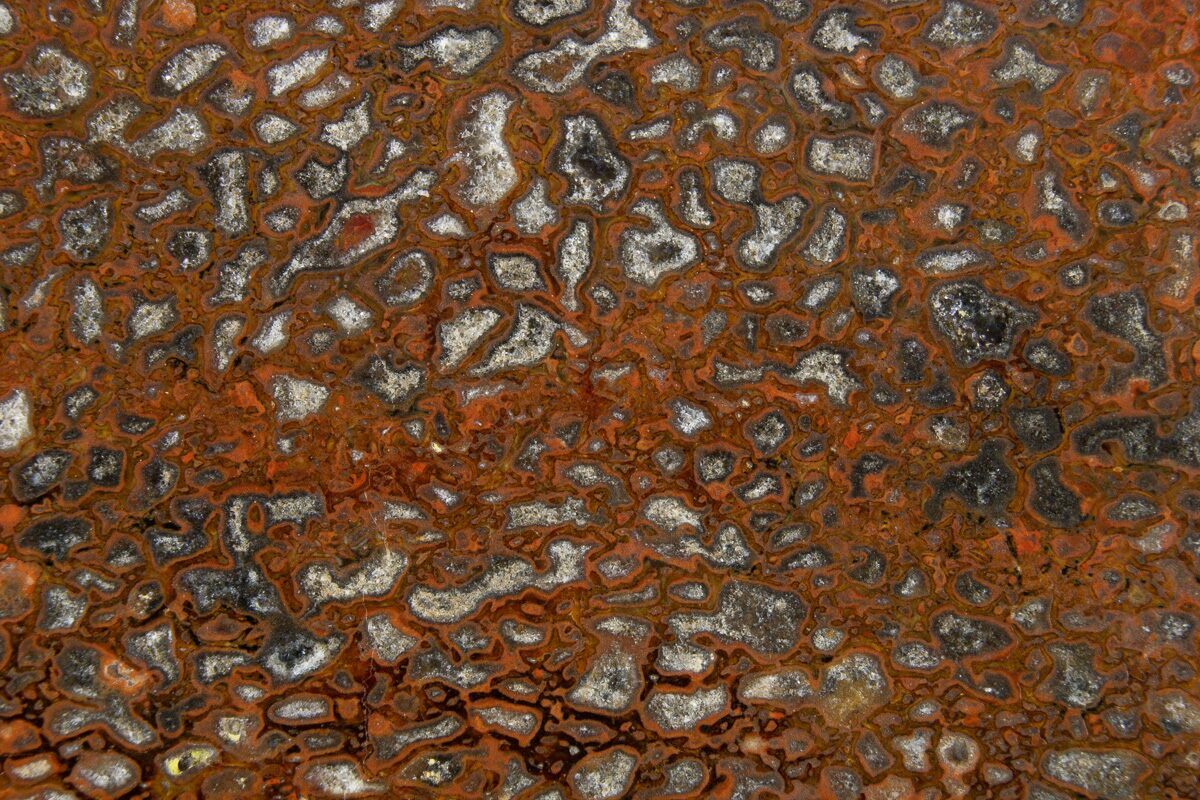 Dinosaur gembone (agatized dinosaur bone) forms when the porous structure of dinosaur bone is replaced by silica-rich minerals like agate, chalcedony, or jasper. This preserves the bone’s internal cell patterns, creating striking, web-like textures visible when polished.