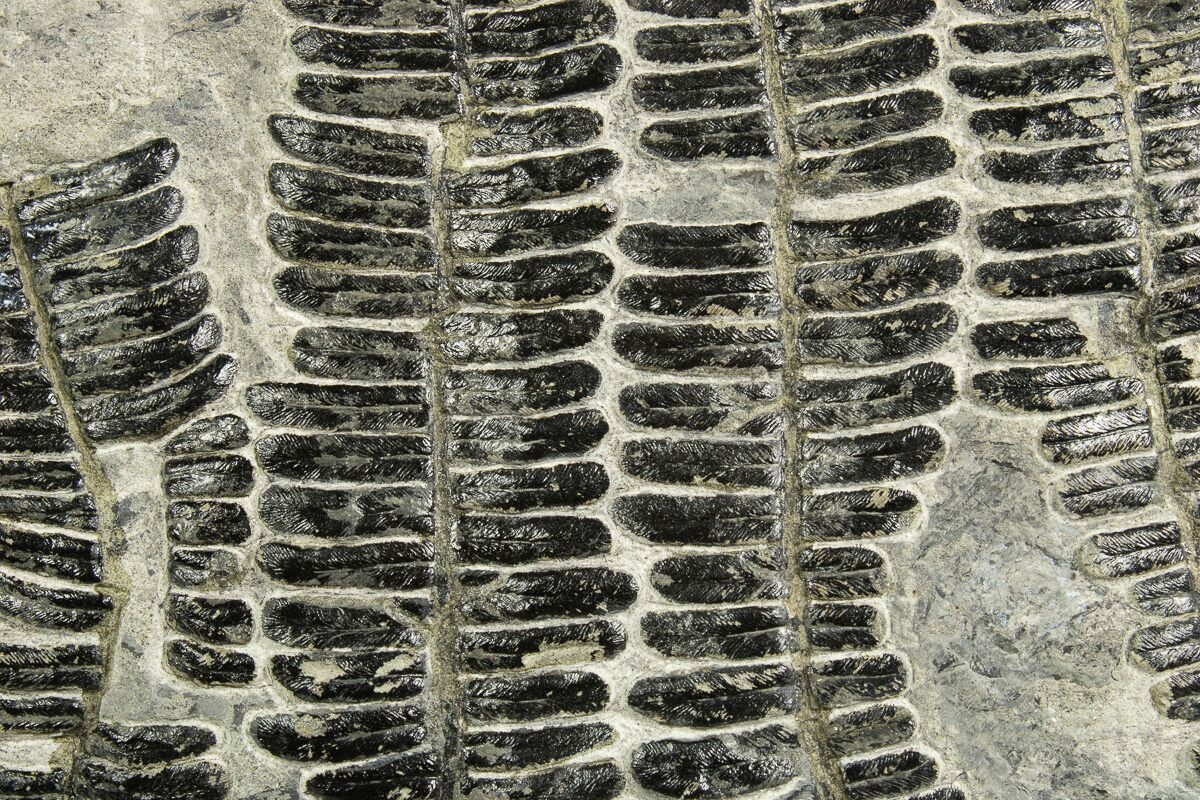 This is a fascinating and rare fossil seed fern (Callipteridium gigas) frond plate from the Late Carboniferous-aged Montceau-les-Mines Lagerstatte of France. This formation is Stephanian Stage in age, or approximately 300 million years old. The ferns are beautifully laid out on a rectangular-cut, 7.2 x 6.6", thick slab of rock. A truly breathtaking fossil fern plate!