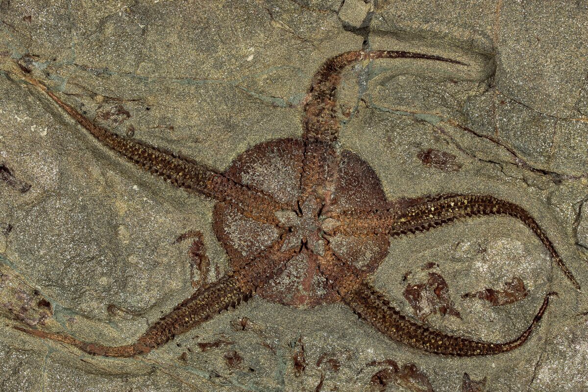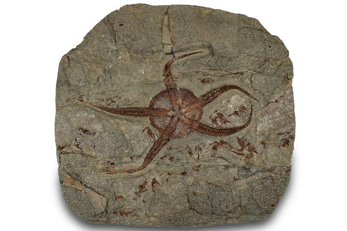 7.2" Huge Fossil Brittle Star (Ophiura) With Carpoids - Morocco