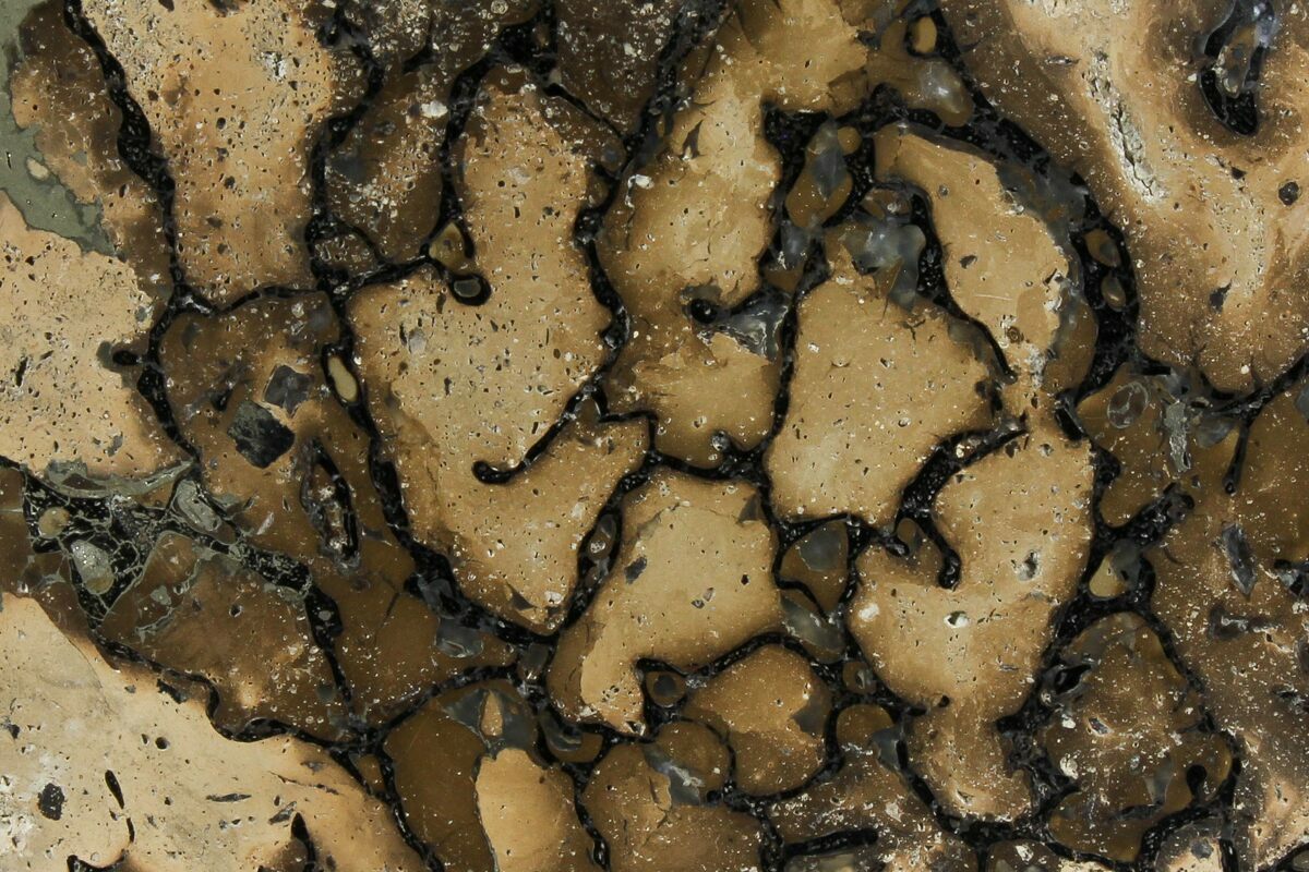This is a section of polished Sauropod bone showing absolutely stunning, large internal cell structure. It was collected from the Lower Cretaceous, Wealden Clay Formation on the Isle of Wight. While complete or near complete bones are rare, water tumbled chunks are often found after they erode out of the cliffs on the isle. Some of these chunks reveal great inner detail when cut and polished.