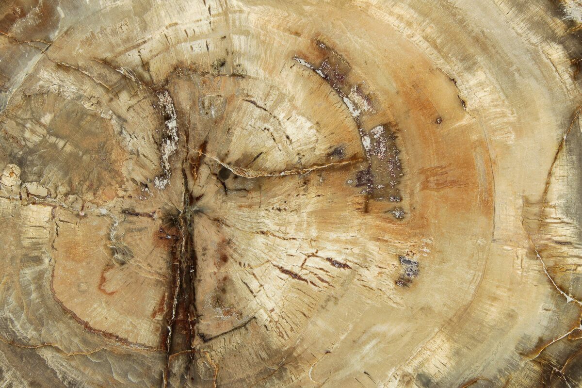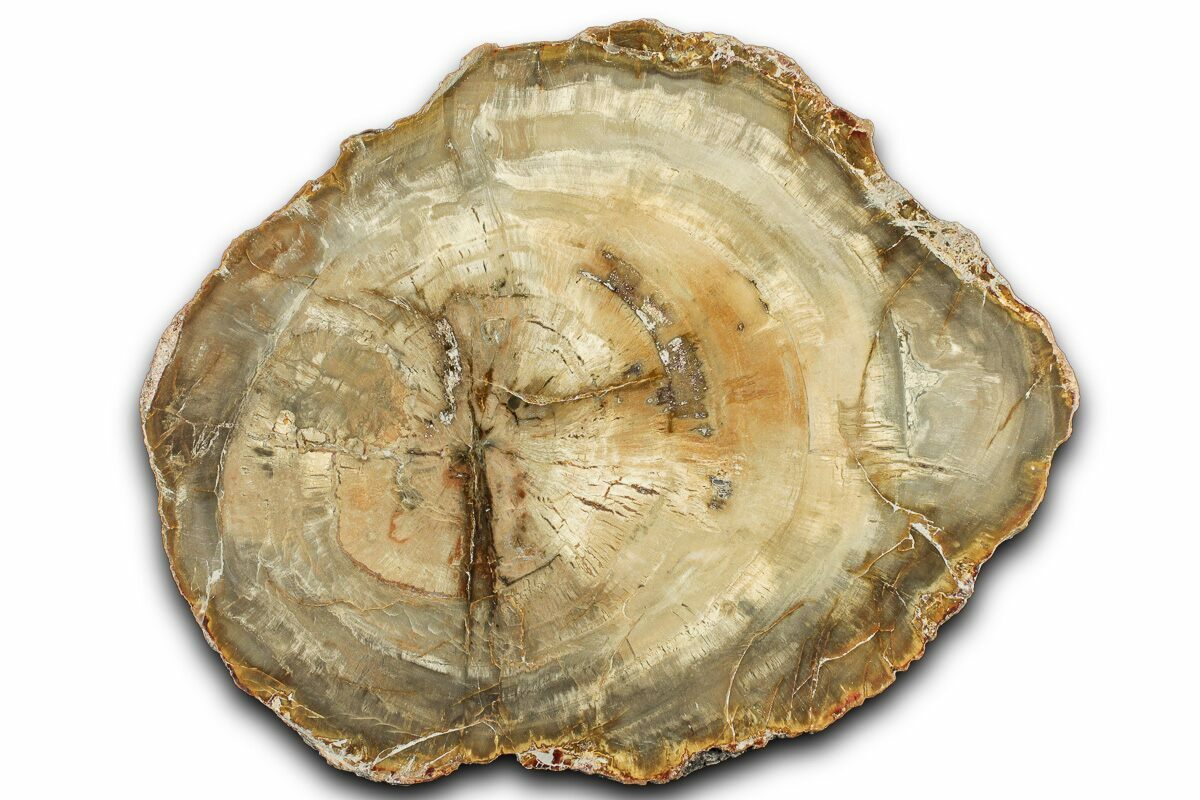 Madagascar petrified wood comes primarily from extensive Triassic-aged deposits in the Mahajanga Basin of northwestern Madagascar, where ancient conifer forests—often attributed to species related to Araucarioxylon—were buried by volcanic ash and floodplain sediments roughly 225–240 million years ago. Over immense spans of time, silica-rich fluids percolated through these sediments, replacing the cellular structure of the wood with chalcedony, jasper, agate, and quartz while preserving growth rings, bark textures, and even microscopic details. The region’s unique geochemistry—especially its iron, manganese, and occasionally copper content—produces the vivid palette Madagascar petrified wood is famous for, including deep brick reds, golden yellows, smoky blacks, and pastel pinks. Many logs are found fully silicified and naturally fractured into large, rounded segments that local artisans cut into slabs, spheres, eggs, and freeforms. These deposits stretch across arid badlands where erosion steadily exposes new material, making Madagascar one of the world’s premier sources of highly colorful, beautifully patterned fossil wood.